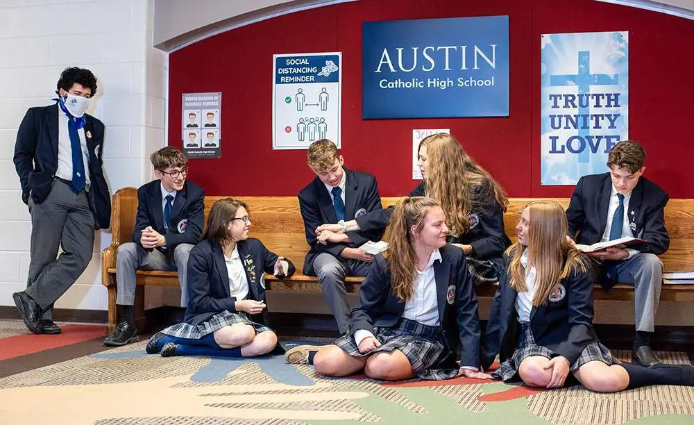 Austin Catholic expects our young men and women to be dressed for academic success. We believe that the appearance of students reflects their preparation for learning, their focus on study, and their desire to prepare themselves for adult life by conforming to a standard of dress and appearance which reflects their commitment to their education. The dress code is meant to teach discipline, to enhance self-esteem, to breakdown social economic barriers, and to prepare students for professional careers. The young men and women of Austin must realize that they represent the values and education of our school in the public.